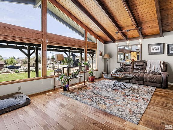 This beautiful 3 bedroom home has so much to offer! Bring all your toys and pets to this one acre property! Large kitchen w/granite counters, wood cabinets, wood floors. Laundry room with large pantry. Separate office/den. Two bedrooms have been converted into a apartment style living (un-permitted) for extra income if needed or can easily be converted back to a master suite. This is a must see for all you horse lovers!, 6 stall barn w/enclosed breezeway. Fenced, cross fenced, wood corals, tack room, arena, round pen, additional storage for hay or whatever your needs may be. Corner lot, with RV parking. Unlimited horse riding on BLM land nearby. Did I mention this property has beautiful mountain views in the main living area! Property was once a licensed boarding facility and could easily become one again with the proper licensing procedures. Newer roof!