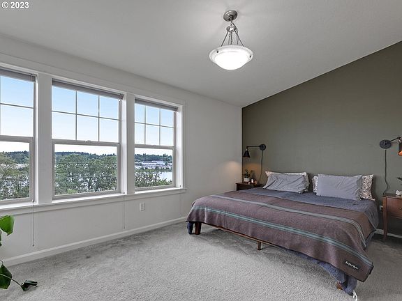 Darling townhouse just minutes to the city, yet steps away to Forest Park. Open floor plan on the main with sliders to a balcony with river views and the stunning St. John' bridge. Half bath on the main and hardwoods throughout. Upstairs, there are three bedrooms, two bathrooms and ample storage. Secure parking with a one car garage. No rental cap.