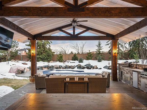 Work from home effortlessly in the main floor office, flooded with natural light that epitomizes the sunny, bright ambiance found throughout the home. Step outside onto the covered deck and discover a backyard oasis tailor-made for Colorado lovers—a pool with a cascading waterfall, an outdoor kitchen including a pizza oven for al fresco dining, taps for your favorite beverages, a convenient sink, and garden beds with drip irrigation. Retreat to the primary suite, where relaxation awaits in a large shower and clawfoot tub, offering a spa-like experience in the comfort of your own home. Additional bedrooms include a Jack and Jill bathroom, as well as another bedroom with its own en-suite.The recently refreshed basement offers additional living space, complete with built-in storage and plush new carpeting. Brand new furnace and air conditioning ensures a cozy atmosphere during chilly winters and refreshing coolness during scorching summers. Experience the epitome of luxury living in this Highlands Ranch gem, where every detail has been meticulously crafted to exceed expectations. Don't miss your opportunity to call this remarkable property home!