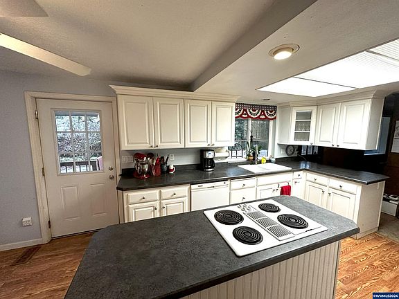 3.33 Private treed acres just minutes to Salem! This large home boasts dual living (separate apartment), large shop, large deck, lien to and more. Paved driveway up and additional driveway down. Home has large living room with fireplace, formal living and dining w/ hutch too. Bedrooms downstairs with craft room, rec space too. Attached apartment has kitchen, living area and full bath. Ample parking and 34x47 shop with upper floor office space.