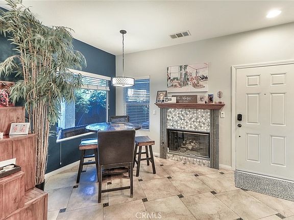 UPDATED RANCHO PARK PUD STUNS WITH HIGH-END FINISHES! This absolutely turnkey townhouse will satisfy even the pickiest of buyers, with high-end finishes throughout and all the upgrades in every room. Entering through the front door, you are greeted by open sightlines through the living room and kitchen. Tastefully professionally designed, the flooring features 21" x 21" commercial grade porcelain tile set in a pinwheel pattern with 2" x 2" granite inserts. The impressive kitchen is open to the living room with granite countertops, solid oak cabinets and a beautiful tile backsplash. The cozy, crackling fireplace has been upgraded with a mantle and stylish tile pattern. Downstairs also features one bedroom and attached bathroom, indoor laundry, and an attached two car garage. Upstairs are three large bedrooms, including the primary bedroom with a stunning en-suite bathroom featuring an oversized jetted tub, separate rainfall shower with floor-to-ceiling tile accent wall, upgraded flooring and a large walk-in closet. There is another full bathroom upstairs as well, which boasts polished porcelain flooring, dual sinks, stone countertops and a professionally designed upgraded shower. The home has a back patio off the living room which has an outdoor ceiling fan and trees. The highly desirable gated community of Rancho Park has delightful mountain views, a pool, spa, open greenbelt park-like areas and a clubhouse. This is one of the biggest models in the community, and has been completely updated with true pride of ownership. Immerse yourself in all that Rancho Cucamonga has to offer - do not delay schedule a showing today!