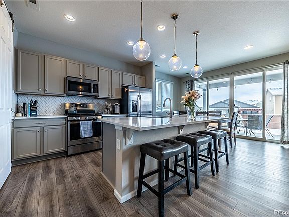 Welcome to 9192 Alberta Ct. This like-new 3 bed, 3 bath, plus loft, home is turnkey with gorgeous updates throughout. As you cross the threshold of the home, you are greeted by beautiful luxury vinyl flooring, which leads you to the wide-open floor plan containing the living room and kitchen. The kitchen has a large pantry with barn-door, new appliances, and an expansive center island! Lots of natural light flows through the large double sliding glass doors. Also contains a nice sized eat-in space. The living room features a gas fireplace and mantle, and is pre-wired for speakers. The main floor also has a powder bath. Upstairs you will find an oversized loft which would make a great additional living space or home office. The Primary bedroom has an attached primary bathroom with walk-in closet, double vanity and generous sized shower. The additional 2 bedrooms are good sized, sharing a bathroom located in the hall. Laundry room is also located upstairs! The upstairs is carpeted with high quality "pet-proof" carpeting. From the kitchen, you can make your way through the double slider, and on to your new concrete porch with covered patio. The backyard has a full privacy fence, sprinklered, and the home backs to a green-belt making it even more private. With quick access to E470, Parker Road, and I-25, you are quick to downtown Denver, DIA, Parker, Centennial, or a straight shot to the mountains. This home is practically new, and the hard part (yard, fence, sprinklers, etc.) is done and the location is great!
