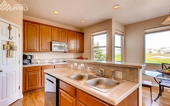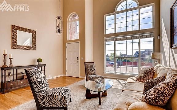 Come see this stunning 2 story home with newly finished basement that backs up to the golf course with beautiful views of Pikes Peak. This home is made for entertaining with a formal living room and separate dining room. The large kitchen with ample cabinets and stainless steel appliances has an adjacent nook with walkout to the backyard. Cathedral ceilings and large picture windows allow lots of natural light in the family room. The bonus room can be an office or craft room. The oversized 3 car garage has epoxy flooring.