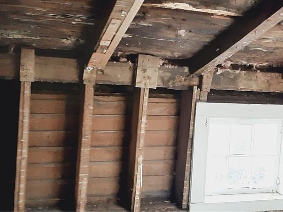 Property being sold as is. House, 2.46 acre corner lot, garage, barn, 2 staircases, fireplace, wooded lot Roof in need of repair no heat in house, exterior wood burner