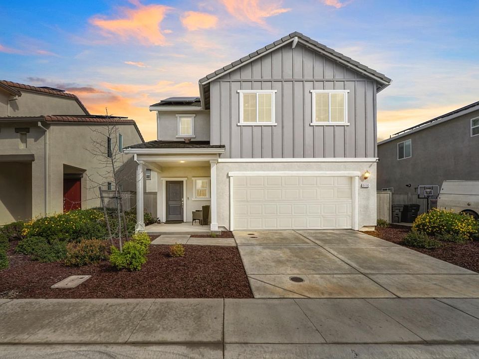 Nestled in Winding Creek, better than new (built in 2021) home w/ OWNED SOLAR is a must see! Charming curb appeal with a farmhouse elevation, low maintenance landscaping, a covered porch, outlet for holiday lights, and keyless entry. LVP flooring and recessed lighting. Powder room for guests. Great room with a large gathering area, a breakfast nook, and a stunning kitchen. Kitchen features ample white cabinetry, quartz countertops, stainless steel appliances, and a pantry. Spacious primary suite with a walk-in closet with shelving. Elegant primary bath with a dual sink vanity with Piedrafina marble counters and white cabinetry, and a large shower with a bench and handheld showerhead. Three secondary bedrooms with closets. Secondary bathroom with a dual sink vanity with Piedrafina marble counters and a tub/shower combo with handheld showerhead. Linen cabinetry and a laundry room with shelving. The possibilities are endless with the large backyard. Popular RCSD schools and West Park High School. Tankless water heater and affordable Roseville utilities. No HOA. Village Center with coffee shop, restaurants, gym & shops nearby. Sports fields, library, aquatic center, golfing, shopping, medical & dining nearby. Two hours to Tahoe, the Bay Area, and the famous Napa Valley.