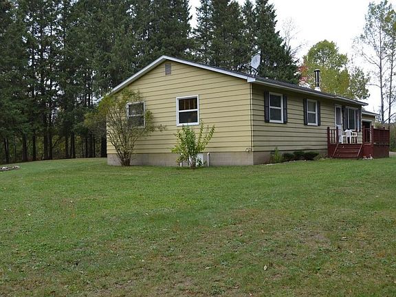 This 1800 square ft. well maintained 3 bedroom ranch sits on a beautiful 10 acre lot with approximately 3 acres of private park like setting around the house and 25x40 pole barn with the rest of the acreage being wooded. The home is in excellent condition and comes completely furnished. The two car attached garage has large built in storage bins and a work bench. The roof was replaced in 2015.There is a 3 season enclosed porch and a beautiful wood burning stove in the living room. Everything is included - Culligan water softener with reverse osmosis, fridge, microwave, stove, oven, toaster, coffee pot, washer & dryer, 50 inch flat screen TV, dishes, silverware and cookware, 2 pillow top queen beds 1 full size bed and 2 twin beds (just purchased twin pillow top mattresses still in plastic)