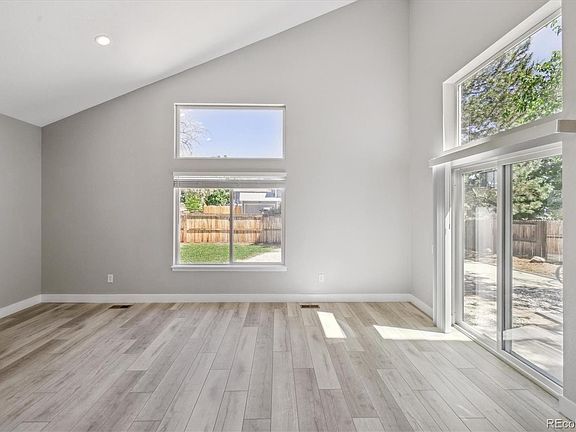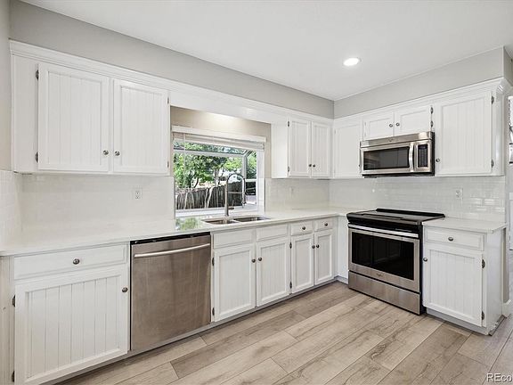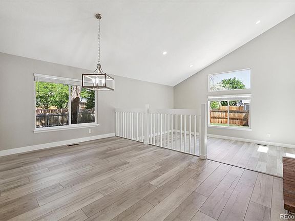 Beautiful first impression as you are welcomed into charming Arvada home on corner lot with mature trees. Soaring vaulted ceilings will knock your socks off as you enter the living room. An open floor plan guides you throughout the 1st level. Expansive laminate wood and new paint create a warm ambiance. Great room also boasts wood burning fireplace, double sided for living room and family room. Plenty of cabinet storage in the kitchen and is outfitted with stainless steel appliances. You will love the sunny breakfast nook with bay window. Upstairs showcases brand new blinds and new carpet. Dream master suite offers vaulted ceilings, walk-in closet, and en suite bath. Utmost privacy is offered in large backyard patio. Low maintenance shingles do not need replacing. Desirable neighborhood has fantastic community clubhouse and pool offering events throughout the year. Fishing pond and trails within walking distance.