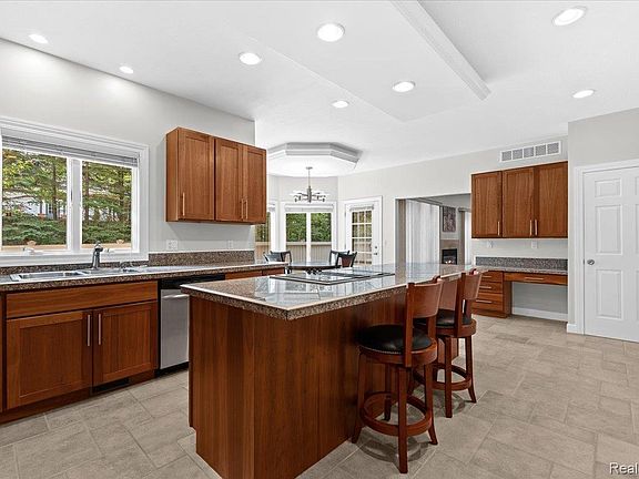 Stop right here for an amazing and rare opportunity to land your dream home in Brighton Township. This custom built, one-owner home features nearly 5,000 square feet of finished living space and sits on nearly an acre of land located just northeast of Woodland Lake. With four large bedrooms, 3.5 baths and a massive four-car, 725 square foot garage... this home has incredible finishes and amenities throughout. Welcome yourself home into the two-story foyer with imported Italian ceramic tile. First floor features include an office/bedroom, two gas fireplaces on the main level, two large living rooms, spacious dining room and main-level laundry. The kitchen boasts custom cherry cabinets, an island, two pantries and the breakfast nook has large bay windows for incredible natural light. The three bedrooms upstairs are huge! The main has a sitting area and room for almost any-sized bed you can dream of. The adjoining main bath has a walk-in shower and jacuzzi tub. The nearly 1,500 square foot finished basement is primed for entertaining and utility rooms feature an incredible amount of storage. Outside, the trees and landscaping provide both privacy and shade which you can enjoy on the well-maintained deck. All of this in the Brighton school district, minutes from vibrant downtown Brighton and public access/boat launch to Woodland Lake nearby. There is so much to offer and experience here... you need to see this for yourself.