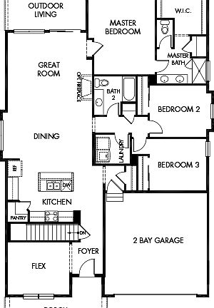 Ranch home with covered outdoor living. Two main floor secondary bedrooms. Honey cabinets, butterfly beige kitchen countertops, agate carpet, light beige colored laminate, and hazelnut hardwood flooring in The District D package.