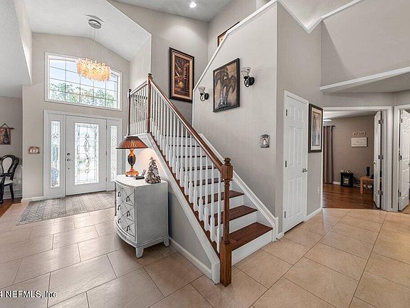 Experience the highly sought after 55+ Lifestyle in the Community of Sweetwater by Del Webb. Here you can live your Best Life with your own private screened in heated POOL and SPA overlooking the lake and sunset views. Step inside to discover this open-concept, vaulted ceilings Laurel Floor Plan that offers 3 bedrooms, 3 bathrooms, a formal dining/flex space, plus a loft. Enjoy upgrades throughout including new exterior paint in 2020, NEW ROOF 2021, NEW HVAC 2023, NEW WATER SOFTENER 2023 and lanai enclosed with tinted film windows and manual awning. This exquisite home boasts luxurious hardwood floors and ceramic tile throughout, plantation shutters, a large custom built in closet in the primary bedroom and additional storage cabinets in the laundry room and garage. Ideal for entertaining and everyday living with soft close kitchen cabinets, a stunning quartz countertop and newly built-in wine cooler. Additional upgraded features include an oversized pavered driveway, gutters surrounding the home, an epoxied garage floor, and an invisible fence in the backyard. This home is truly a hidden gem and offers everything from an indoor to outdoor private retreat here in Northeast Florida! The wonderful amenities and activities Sweetwater by Del Webb has to offer includes an indoor and outdoor swimming pool, fitness center, tennis courts, meeting rooms, bocce ball, and Pickleball! Don't wait, schedule your showing today!