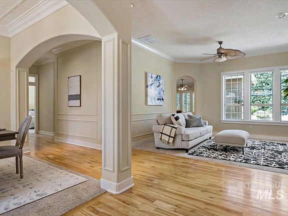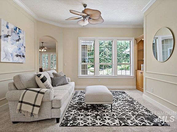 Pristine surroundings, tree lined streets and gated entrance welcome you as you drive through Riverside Village and enter the River Pines neighborhood. Lush landscaping in an upscale neighborhood with high end finishes and features throughout the remarkable home entice you to come relax and enjoy the good life! Spa like primary suite includes a fireplace, patio door, separate closets with custom shelving, linen closet, separate vanities, large soaking tub, and a walk in shower. Tons of natural light through the many windows, 10 foot ceilings, 3 fireplaces, storage galore, & a flexible floor plan welcome family & friends. Entertaining is a breeze when inside blends seamlessly with outside & multiple covered patios, a waterfall feature, sun screens, overhead fan, & extra parking are available. Three car garage has heater & built in cabinets for all your toys. Oh so close to the Boise River, Greenbelt, shopping, restaurants, entertainment, foothills, and minutes to all Boise and Eagle have to offer.