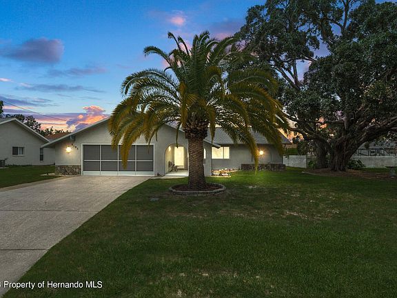 Beautiful 2-Bedroom, 2-Bathroom home with a 2-car garage situated on a generous quarter-acre lot. This well-maintained home welcomes you in through a bright and airy entry way leading into the split floorplan style of living adorned with soft carpeting and sleek laminate wood flooring throughout. Entertain guests in the generous kitchen featuring tons of countertop space and storage. Modern touches like the newer windows amplify the home's contemporary flair. Outside, entertain in style on the screened lanai, which houses a built-in media center and for the billiard aficionados, enjoy a game on the included guest pool table. Further adding to the functionality of this home is an outdoor shed, provided as-is, ideal for additional storage or hobbies. Nature lovers will appreciate the variety of trees dotting this exquisitely landscaped property. The outdoor ambience is as captivating as the interior comforts. This home seamlessly blends relaxation with sophistication, making it the perfect retreat. Don't miss out on this unique opportunity to own a slice of paradise. Book your showing today!