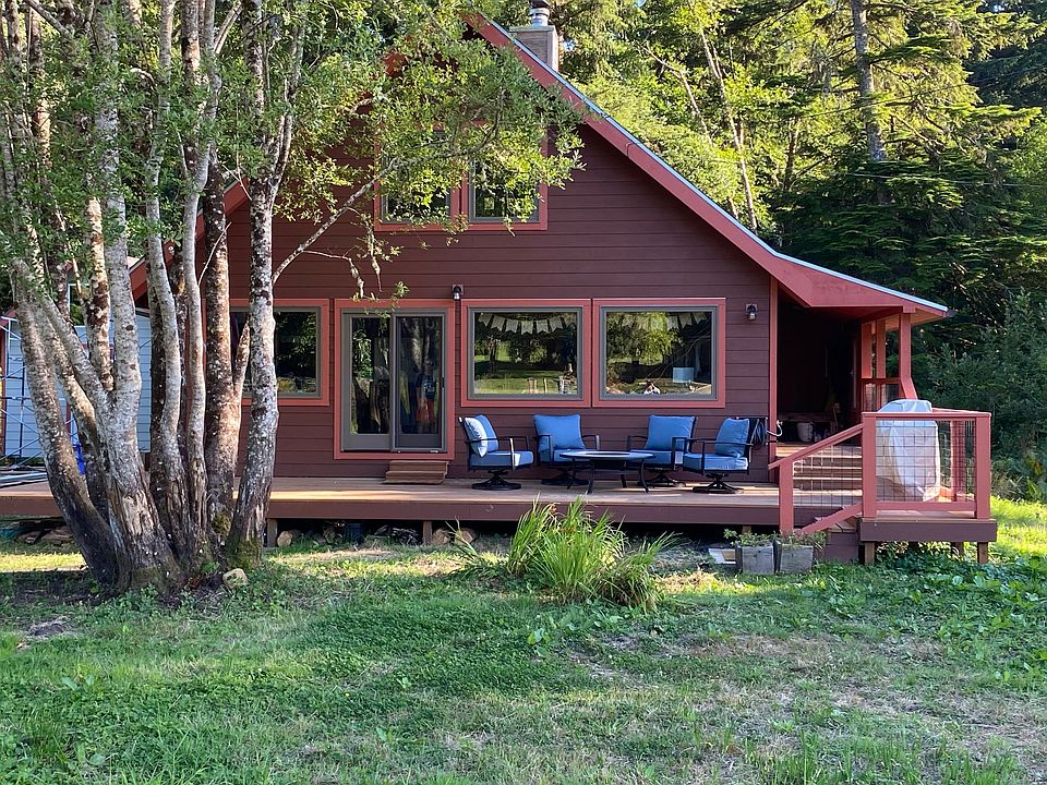 Property sits on the backside of 1/2 acre with a creek running through the yard. Elk and deer visit everyday. Very quiet road and only 15 min walk to the beach.