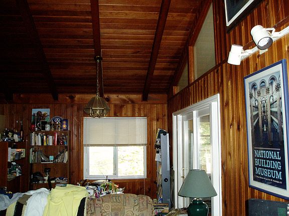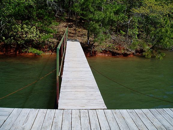 Upper: 2 bed 1 bath. LR/ Dining area/ kitchen has wood ceiling with exposed beams. All rooms have pine board walls. Oak flooring in LR/ Dining. Brick fireplace. Florida room. 8' x 40' deck in rear. Lower: 24' x 32' deck. 1 bed 1 bath. Brick fireplace. Property includes single slip dock in Lake Lanier. Deep water.