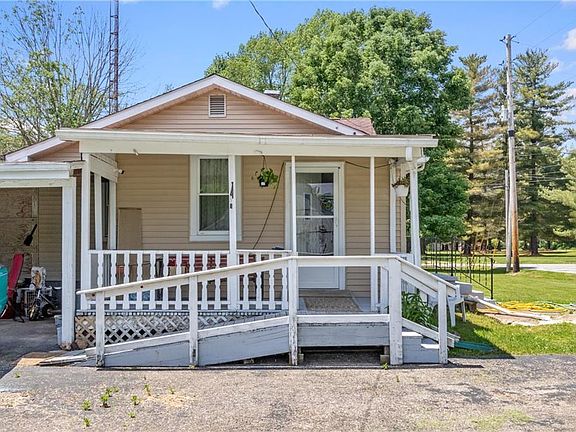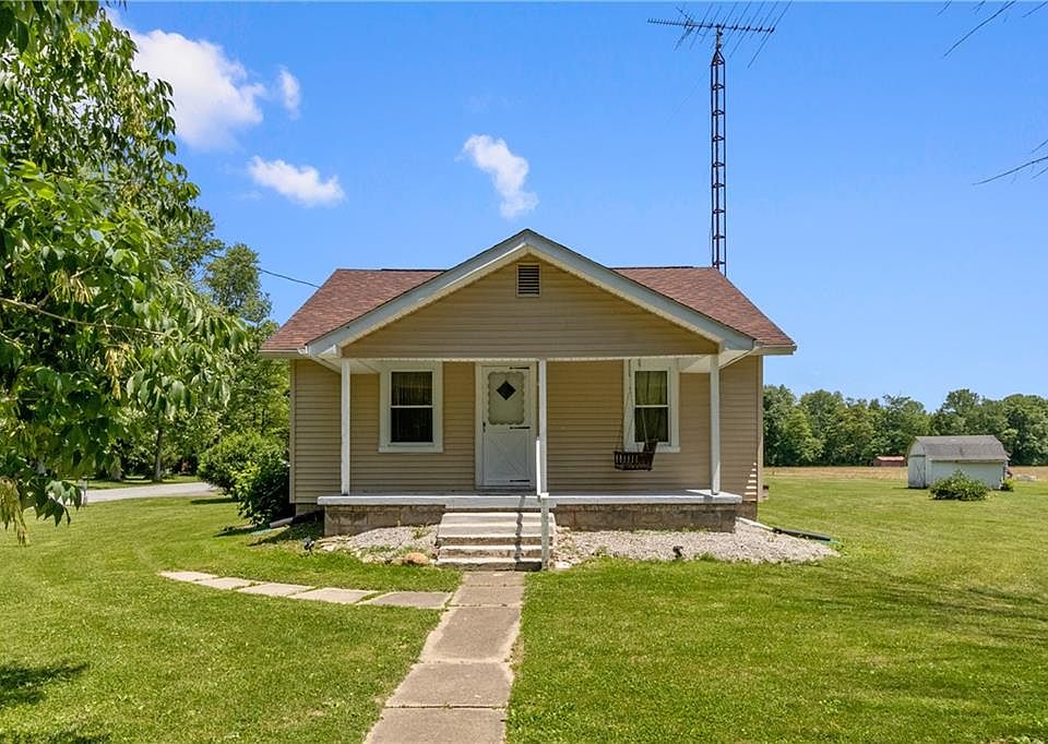 Country living yet close to town with this 2 BR Craftsman-style vinyl-sided home on almost 16 ACRES just southwest of Columbus with easy access to I-65; living room; large eat-in kitchen w/breakfast bar, range, microwave & refrigerator; main-level master bedroom; 2nd level of home features a loft area plus additional bedrooms; 24x28 barn w/lean-to; storage building; 2-car attached carport; front porch; covered rear patio.