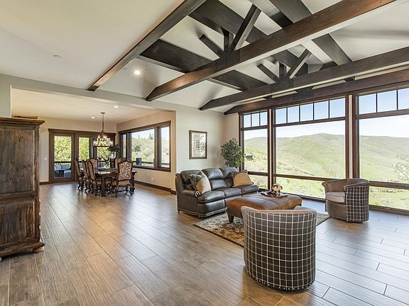 Located in the private gated community of Moose Hollow! This home offers main level living with master and office on the main, large garage, large commercial grade kitchen, walk-in pantry, walk-in closets, large deck for entertaining, and private master deck, large bedrooms, two contemporary lineal fireplaces, 8' solid custom wood doors, large dry bar, game area, ample storage and walkout lower level, custom built dog bath, hiking and biking trails right out your door. Well appointed designer finishes!