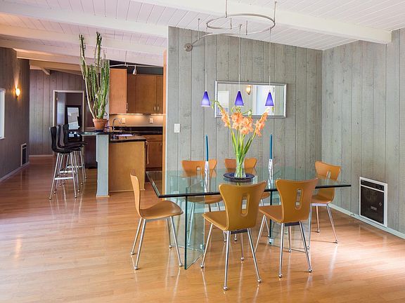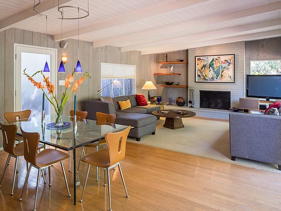 Unique Mid Century Modern 3 bed/2 bath single level home reminiscent of an Eichler. Oriented towards the Carmel River for ultimate privacy in Carmel Mid Valley where the weather is the best that the Monterey Peninsula has to offer. Enter the Living Room with a wood burning fireplace, basking in light, with its open beam ceiling and floor-to-ceiling windows flowing into a large outdoor paved patio ideal for entertaining or simply for relaxation to the sound of the Carmel River and closeness to natures' beauty. Remodeled bathrooms and kitchen with maple cabinets, granite counter and breakfast bar. Just a 15 minute drive to the beach or Carmel-by-the-Sea. Come for the sunshine and stay for a lifetime.