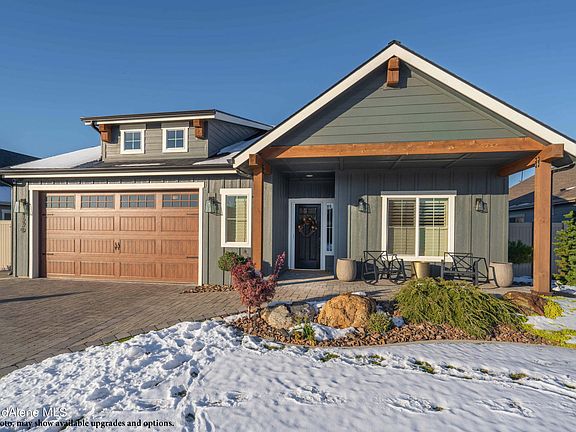 Sold at time of listing in Hayden's newest community, The Fields. Minutes to Honeysuckle Beach, English Point Recreation Area, Hayden Lake Country Club, Avondale Golf Course, parks, retail, schools, and more. Well designed, open floor plan, 3 Bed, 2 Bath Rancher with great natural light. The covered porch and entryway take you through a beautiful knotty alder front door with 1/4 light and sidelights into a spacious 6' wide entryway. Interior features include: stained solid core doors and oversized trim package, 14' tall vaulted great room with 55'' deluxe linear gas fireplace surrounded by cultured stone masonry and a stained and lacquered mantle, 9' patio slider, gourmet kitchen with large pantry, GE stainless appliance package including gas range with convection, instant air-fry and center griddle, chimney style hood and microwave drawer built into the custom made, mission style, soft close cabinetry, under cabinet lights, quartz countertops with undermount dual bowl composite sink, air switch garbage disposal and full backsplash. Primary suite with private bath featuring full tiled shower walls, quartz countertops w/ matching backsplash, double raised vanities, linen closet, and large walk-in closet. Other features are a deep 24 1/2 ft garage with wood grain, insulated roll up door, plus garage man door, full A/C, hand applied skip trowel texture on all walls and ceilings, rounded corners, full wood wrap for entryway windows, great room windows, sliders and closet doors with nice hardware/fixtures throughout, 9' ceilings, luxury vinyl plank flooring in main living areas and extra plush carpet pad in carpeted bedrooms. The expanded covered back patio has a BBQ gas stub to enjoy your landscaped backyard.
