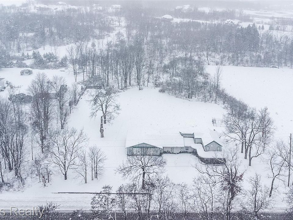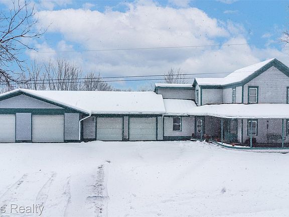 Welcome to this stylish remodeled farmhouse that blends classic charm with modern updates on over 6 acres in the heart of Goodrich. Offering over 2000 sq ft, this home includes 3 bedrooms and 3.5 bathrooms with quality improvements throughout. The updated kitchen features concrete countertops, commercial-grade appliances, a walk-in pantry, abundant cabinet space, and an electric fireplace. The first-floor primary suite provides privacy and comfort with heated slate flooring, a slate walk-in shower, and a soaking tub to enjoy. First-floor laundry adds everyday convenience. A major highlight of the property is the oversized 6-car garage—large enough to fit up to 8 vehicles. This space includes heated floors, its own furnace, and a full bathroom with shower, making it ideal for car collectors, contractors, or hobbyists needing functional workspace. Recent mechanical upgrades include a new furnace and 5-ton AC installed in 2021. The home also features a wrap-around porch, offering the perfect spot to relax and enjoy the peaceful surroundings. The property sits on over 6 acres, offering privacy, wooded area, and frequent wildlife. Close to Goodrich amenities and next to the high school, this home provides land, character, and convenience without village taxes. Homes with this level of updates, acreage, and garage space are hard to find.