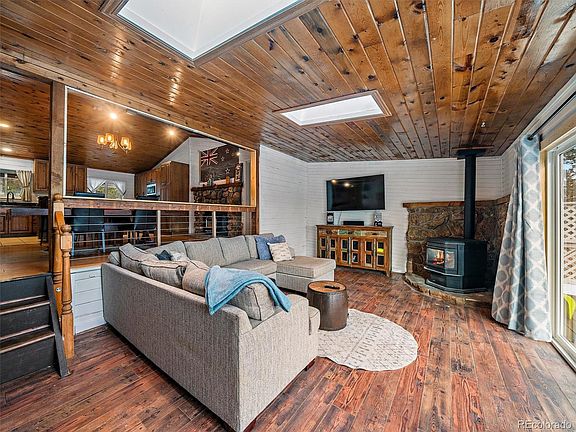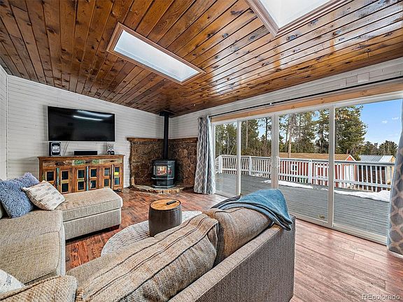 Exceptional mountain property featuring a ranch-style home on a splendid partially fenced farm with water rights for horses, livestock, and chickens. Charm abounds with a large covered front porch and classic white shutters. Inside, vaulted wood ceilings, abundant windows, multiple skylights, radiant in-floor heating, and an open floor plan create a cozy, bright, and inviting living space. This gorgeous home is ready for you to move in. The remodeled chef's kitchen boasts beautiful wood cabinets, granite counters, and stainless-steel appliances. The adjacent dining room, complete with a cozy wood-burning fireplace, is perfect for entertainment. The family room includes a pellet stove, skylights, and sliding doors that open to a huge back deck overlooking the yard. The primary suite features double doors to the back deck and beautifully remodeled ensuite bath with walk-in shower. Two additional bedrooms and a full bathroom with a laundry area complete the main living spaces. Lastly, a versatile bonus room allows for so many potential uses - use your imagination! The current owners have spent countless hours updating the property including interior and exterior paint, new bathrooms, wainscoting and tree mitigation. Outside, you ll find an oversized garage for all of your toys. And, don t miss all of the additional outbuildings including a shed/workshop, chicken coop (or wood storage shed), loafing shed, and barn. The land, adorned with pine and aspen trees that have recently been mitigated, features a large, fenced pasture and a separate fenced area for chickens, livestock, or canine companions. The possibilities for this property are endless. The location is great too, with easy access to 285, shopping, restaurants, top-rated schools, county-maintained roads, and a nearby school bus stop. Come see this idyllic mountain retreat for yourself.