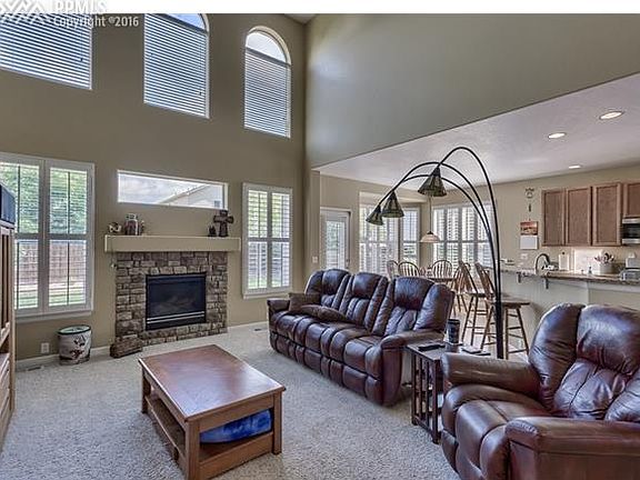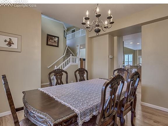 Welcome home to this desirable open floor plan. Offering hardwood flooring, plantation shutters, and spacious eat-in kitchen w/42??? cabinets, gas range, granite countertops & pantry. The Great room has lots of natural light, high ceilings, & a stone front gas fireplace. Formal dining room, main level office or guest suite with a 3/4 bath and main level laundry room. Upstairs you have an exceptional master suite, 5piece bath, spacious walk-in shower, soaking tub and walk-in closet. Two more bedrooms and full bath. The large open loft offers a space for a work, computer or play area. The unfinished basement offers over 1200 SQFT of options. Oversized 2.5 car garage. Fenced back yard w/large stamped patio & wired for a hot tub. Fenced dog run. Prewired for security, automatic sprinkler system, window well covers, 2 A/C's and 2 Furnaces, Radon Mitigation system and much more. Close to the Golf Course and the Woodmen Hills Rec Center that offers a pool, & activities for all and nearby walking trails.
