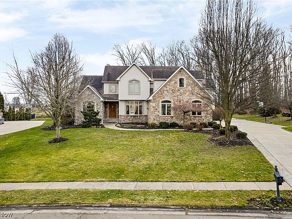 Located in The Reserve at Emerald Estates and one of Ohio's highest-ranked school districts, this magnificent property allows you to embrace the Luxe lifestyle. The main levels provide over 4,200 square feet of living space, including 4 bedrooms, 4 full and 2 half baths. There's an additional 1,800 square feet in the dramatic, finished lower level. The lower level was meticulously and carefully remodeled over the course of a year and consists of an integrated theatre room, pub-style bar, temperature-controlled wine cellar, gathering area with fountain, full bath, and a home gym. The main level owner's suite gives multi-sided views of the backyard area and private access to the upper patio. The living areas at the rear of the home provide almost panoramic views of the backyard oasis and enhance the living space with an abundance of light. There is no shortage of additional living space with three bedrooms and an expansive bonus room on the second floor. Remote work is ideal when you can do it from the main level office overlooking the front of the home and private cul-de-sac. When summer arrives, you will absolutely love the heated saltwater pool. Parties and gatherings become much easier with the adjacent pool house featuring a 1/2 bath, wet bar, fridge/ice, shower, and TV. Other outdoor amenities to compliment the grand lifestyle include a gas fire pit, pool waterfall, and extensive patio areas for entertaining. Don't miss your opportunity to own this premier property.