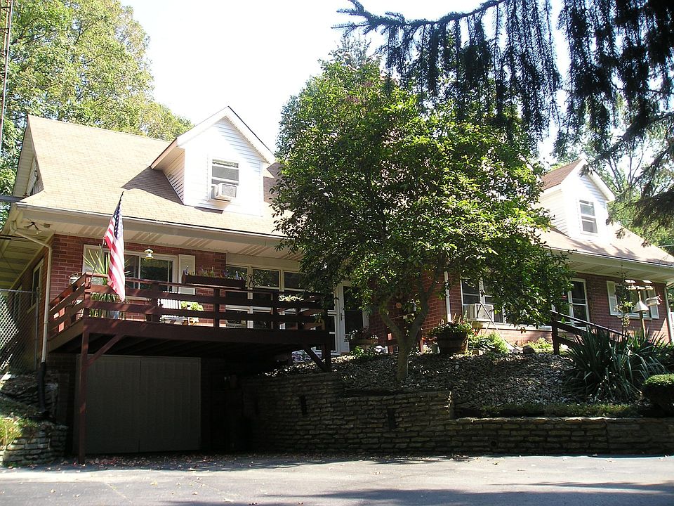 Nestled in the woods is this 2755 sq.ft. brick and vinyl home. Offers 5 bedrooms and 3.5 bathrooms. Main level consist of large kitchen with center island, ceramic floors, ceramic counter tops and a large breakfast area. Family room has wood burning fireplace, dining room, utility room,1 bedroom and 1.5 bathrooms complete the main level. Upper level has 4 bedrooms, master BA with jetted tub, skylights, full BA, plenty of storage closets, and wood balcony deck off master bedroom. Outdoors you can enjoy your above ground pool, basketball court, and 3 outdoor decks. You'll find lots of storage space in this home. 5 minutes from Richmond, IN and I-70.