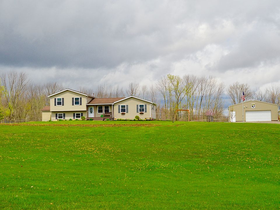 Super nice 4-level split home situated on 8.741 country acres with picturesque views and GREAT hunting! This property features 4 bedrooms, 2 full baths, a huge open living room, dining area, office area, and cabinet filled kitchen with all major appliances conveying. This enormous area is highlighted by a very nice wood stove. Lower level family room, big back deck and fenced in back yard, Awesome 50x30 pole building with concrete flooring and electric and wood burning stove, three sided shed that measures 18x21 - would be ideal for a family member involved with 4H. This home has a ton of updates including both bathrooms, newer roof, newer pressure tank, all newer windows, newer water heater, and newer water softener. This home is a MUST SEE!