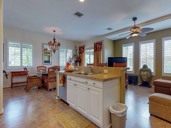 There are three spacious bedrooms, featuring a king bed, a queen bed, and a trundle-style bed, along with three full baths. A second-floor den that can be turned into a fourth bedroom with a pull-out sofabed or used as an office.