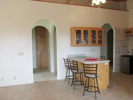 JUST REDUCED! Looking for a great buy? This rarely used 3 bedroom - 2 bathroom home with arches and Italian tile reminiscent of villa. Wide brick stairway to arched extra wide hallways. 3 large bedrooms each have ceiling fans, lighted closet and built-in storage units. 14 foot high vaulted ceilings of knotty pine throughout the home. Italian tile on all floors. Oak kitchen cabinets with etched glass fronts, Corian counters and Brazilian tile for backsplash. Luxurious bathrooms with Italian tile on walls, floors and showers. Oak vanities, etched mirrors and lots of light. Sliding doors to a 224 sqft lanai - accessible from living room and master bedroom. Ocean and South Point views. Many walkways among the flowers with avocado, mango and mature Ohia trees. Covered 2 car carport. Downstairs has enclosed laundry area. Great place downstairs for family and could be enclosed. Lots of possibilities.... Come see this great home. Seller is offering a generous $7K appliance credit so you can pick your own style appliances.