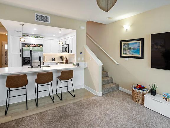 This home provides you with extensive amenities so you can fully relax with convenience and ease. Comfortably sleeping 6 guests, this home has a fully stocked kitchen, 3 bedrooms, 2.5 bathrooms, a covered outdoor lanai, and access to the beautiful community resort-style pool and hot tub.