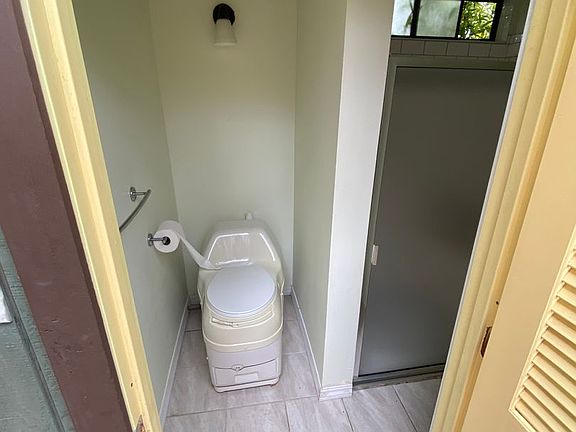 Step outside to your spacious private yard, porch, patio, and deckideal for embracing Hawaii's beautiful outdoors. A large, separate bathroom building is conveniently located next door, providing added privacy and comfort.