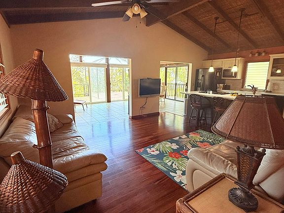 Pet-Friendly Fully Furnished 2-Bedroom Home in Ocean View, HI Available on April 1st! Move in and enjoy island living! This beautifully furnished home offers comfort, privacy, and stunning ocean views on a spacious 1-acre lot. The total monthly cost is $2,200, which includes a base rent of $2,000 and a $200 Utilities & Appliances Package. This package covers water, trash, electricity, gas, and the use of listed appliances. Internet and cable are not included. Pets are welcome. This home features two spacious bedrooms with ample closet space and two modern bathrooms. The fully furnished interior includes contemporary decor and essential appliances such as a refrigerator, oven, microwave, coffee maker, and dishwasher. A high-tech security system provides added peace of mind. Relax and take in the breathtaking ocean and garden views from the expansive deck, perfect for entertaining or unwinding. A one-car workshop offers space for projects or hobbies, while a shared laundry room adds convenience. With three designated parking spaces, parking is never an issue. Located just 10 minutes from Kahuku Park for outdoor activities, 15 minutes from grocery stores, coffee shops, and local restaurants, and 20 minutes from the beautiful and secluded Pohue Bay. Renter's insurance is required. This home is pet-friendly! Note: The unit is currently occupied, so showings must be scheduled in advance to respect the privacy of our tenants. Don't miss out on this serene island escapecontact us today to schedule your personal tour! Krystal Freedom, MBA, Realtor CalBRE #021308648 Cell No.