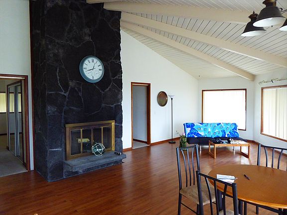 Best Priced, well built home on 2 acres in Ocean View and yes you will enjoy the Ocean views from your open concept front/living room. Live here, enjoy company or entertaining with all your loved ones. On cold evenings light up the wood burning stove to relax and snuggle. This amazing gem won't last long. Highly affordable and priced to sell quickly. 2, 1 acre adjoining lots with a home waiting for your magic touch. The home is permitted and on the grid. Everything you have been asking for is right here. From the moment you enter the property, you find a nice flat lot front, side and back allowing for parking, RV, plenty of room for your toys. The home it self is 2 master suites with ensuites, allowing for privacy from both bedrooms. Huge floor to ceiling fireplace for those chili nights in Hawaii. The large wrap around lanai is why we live in Hawaii, outside! The landscaping on the front of the home is gently terraced an the beds are ready for your plantings/ cuttings. Plenty of room for all your animals on this property. Truly this is a special property. Mature trees on the front of the property allow for shade up front. So many places to build your she/he sheds. Expansive ocean views from the open living front room and kitchen, and the outdoors lanai. You may pinch yourself when you fly here just to see this gem. OceanView has a lot to offer: farmers markets,multiple grocery stores, gas stations and other shopping. Close to many nice thrift stores. Enjoy the bakery in Punaluu when you come to OceanView.