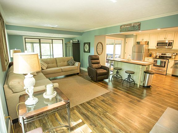 LAKEVIEW! Beautiful, completely remodeled turnkey upper level condo located in a gated Lake Cumberland Community. 3 bedrooms, 2 full baths, granite kitchen and bathrooms, tile showers and open living space, with all new flooring. and laundry . The screened porch has been vinyl sliders for additional living space. Resort has 24 hour security, clubhouse, pool, Pickleball and tennis courts, basketball court, volleyball courts and play ground. Resort also has an 18 hole golf course, boat dock, boat launch and storage! Condo also has a beautiful LAKE VIEW!! Won't last long.