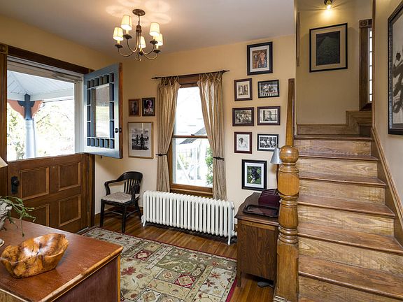 Stunning Victorian! From the moment you step on to the wrap around porch and enter through the Dutch door inlaid with stained glass you'll fall in love with the beauty, quality and character of this home. Magnificent wood floors throughout this extraordinary five bedroom home w/original wood finishes and pocket doors. Large open rooms w/high ceilings let in the natural light. The dining room and den feature exposed brick fireplaces while the spacious living room has the third fireplace in the home. Rear deck leads to private paver patio. The laundry area is conveniently located on the first floor.Bonus! Separate entrance to the third story is a legal rental with considerable space equip w/large eat-in kitchen, bedroom,living room and full bath. This space can be accessed from the 2nd floor
