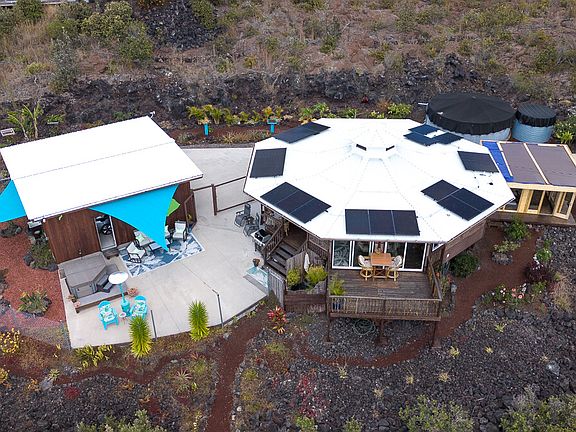 Escape to your own private paradise on 1 acre of beautifully landscaped land in Ocean View, Hawai’i. This unique cedar octagon-style 1-bedroom, 1.5 -bath home is designed for seamless indoor-outdoor living, offering breathtaking ocean views and spectacular sunsets from nearly every angle. This hale comes FULLY FURNISHED!