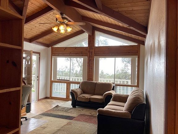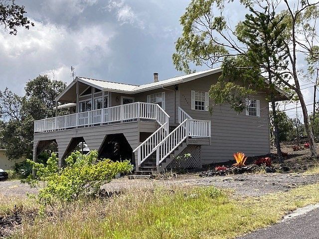 Just Reduced Price! Wonderful home that checks all the boxes! This home has so many great features. The main home has three bedrooms and two full baths, The large master suite has sliders out to deck with ocean views, a comfortable living room with vaulted ceilings and a cozy lava rock fireplace, there's a a huge covered lanai great for cookouts and gatherings. Downstairs is a great covered double carport perfect for the car guy or hobbyist with workbenches, lots of lockable storage and laundry hookups. There is a separate fully permitted O'hana with a full bath as well, apart from the main house. Perfect for Mom Dad or guests. There is a circular driveway a brand new 10,000 gallon water tank installed and some lovely plants and trees on the property. Don't miss this one!