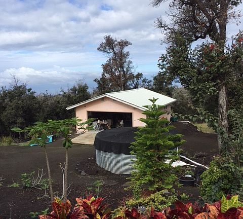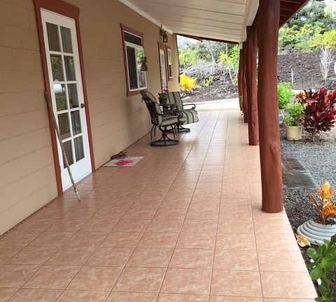 Must SEE! Custom built ciinderblock home with vaulted ceilings and incredible views. You can huff and you can puff but you can't blow this house down! Easy maintenance-cinder provides great R value for cooling and heating. Built really well, and will last forever! Well forested large lots home will be sold with two adjacent one acre lots. Has a cute, clean and private non-conforming @460 sq ft Ohana for family or guests. A large 25 x 30 free standing garage/workshop. Nice landscaping, easy maintenance, concrete pads and two water storage tanks with a unique engineered easy maintenance water treatment system. Public water available free to refill your storage tanks from the community well. Expansive ocean views from a nice large covered lanai and patio and an @8 x 48 covered front porch for coffee in the mornings. Great neighbors and the perfect family or retiree community!