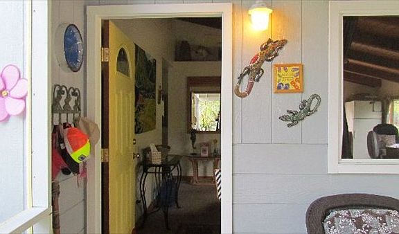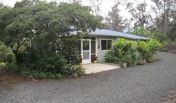 Not far from the Ocean View Town Center you'll find this Immaculate, Comfortable Home in a Wonderful Wooded and Private Location. Extensive Landscaping all around giving you the feeling that you're in a Botanical Garden. This is a Single Level Home, 2 Bedroom, 1 Bathroom - NO Stairs! Vaulted Ceilings and Granite Counter. Very Comfortable and Very Easy to Maintain. There is a Roofed and Screened Lanai/Patio for Relaxed Outdoor Dining, There is also a Second Pad dozed out back that's ready for building your; Nursery, Work Shop, Art Studio??? The Owner is willing to make the Home Available Turn-Key for an Easy Move to Paradise. You would never know that this property is Only 2 Blocks to the Ocean View Town Center and Hwy 11. A Must See!