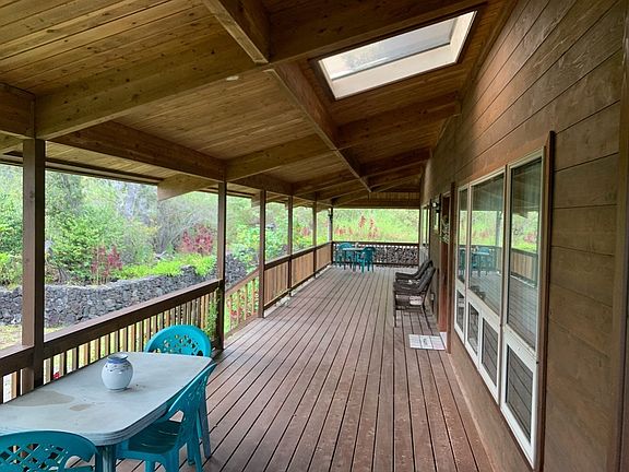 Well-built 2 story Lindal Cedar home with 3 bedrooms and 2.5 bathrooms and an additional loft area that could serve as a 4th bedroom. Situated on 1-acre at an elevation of approximately 2,000’ feet within close proximity to Ocean View town and is located within an hour drive of Kailua-Kona and an hour and a half from Hilo town. Property Features • Home is a Lindal Kit that was shipped from Washington State • 1,140 sq. ft. wraparound lanai on front and both sides of home • Granite countertops in Kitchen • Laminate flooring throughout home with oak wood steps leading to the second level • Ample interior storage space • Separate laundry room off kitchen area with stackable washer/dryer • 4 Interior and 5 exterior skylights • 1,240 sq. ft. concrete slab in the back of the house • Water tank is approximately 20,000 gallons • Tropically landscaped with orange, lychee, Surinam cherry, banana, a cross-pollination lime lemon, loquat and avocado The number of bathrooms differ from the County Records. Preliminary Title work has been completed by Kianna Leomiti with First American Title.