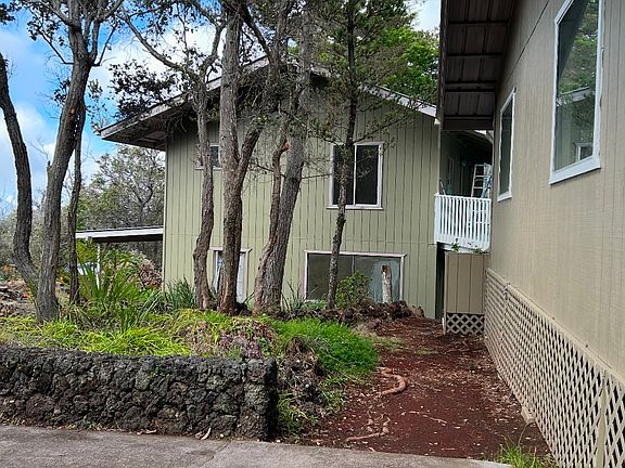 A HAWAII SHANGRI-LA one enters this magical retreat - through a lovely entrance with the first home, a European ginger bread house with custom windows and doors, cute galley kitchen and loft. previously sleeping 4. You meander down a winding driveway lined by lava rock walls and truly a bird sanctuary among a magnificent Ohia forest. This jungle retreat at an elevation of 3500' has an approximately 1,092 sf of a great room, bathroom and country kitchen which looks out onto an enormous deck of 40' X 22' with what was a bistro kitchen at one end. Perfect for a commercial kitchen unit and pass through for those great Hawaiian parties. The Great room is immense and includes an indoor kitchen and a huge bathroom and a placement for a Ben Franklyn stove. If one strategically placed tables and chairs on the lanai, you would have the best birds eye view of the tropical forest overlooking the beautiful Ohia forest and beautiful native plants of koa, tree ferns, wild, orchids and hibiscus. Attached to the home by a walkway are approximately 1800 sf of a 4 bedroom sleeping quarters which include 2 en-suites, walk in closets, shared bathroom both opening onto the lanai area overlooking the jungle. Down stairs is a duplication of space but now designed to be a work shop and artist room or bedrooms also with their own bathroom and two carports. Approximately 5,000sf self-contained catchment tank is near this structure and can serve the 4th "West Wing" ginger bread cottage guest home nestled in the back of the property for total privacy and has slept 6. It comes with its own fireplace location, full kitchen, dining area, living room, bathroom and loft. A screened porch perfect for relaxing. Many improvements such as new solar system, painted inside and out. Buildings seem very well built with some copper piping, hurricane clips on the two story along with 2" lX 12" joists, extra storage and a brand new catchment system and solar A DREAM COME TRUE - LIVE IN ONE AND RENT THE REST.