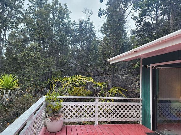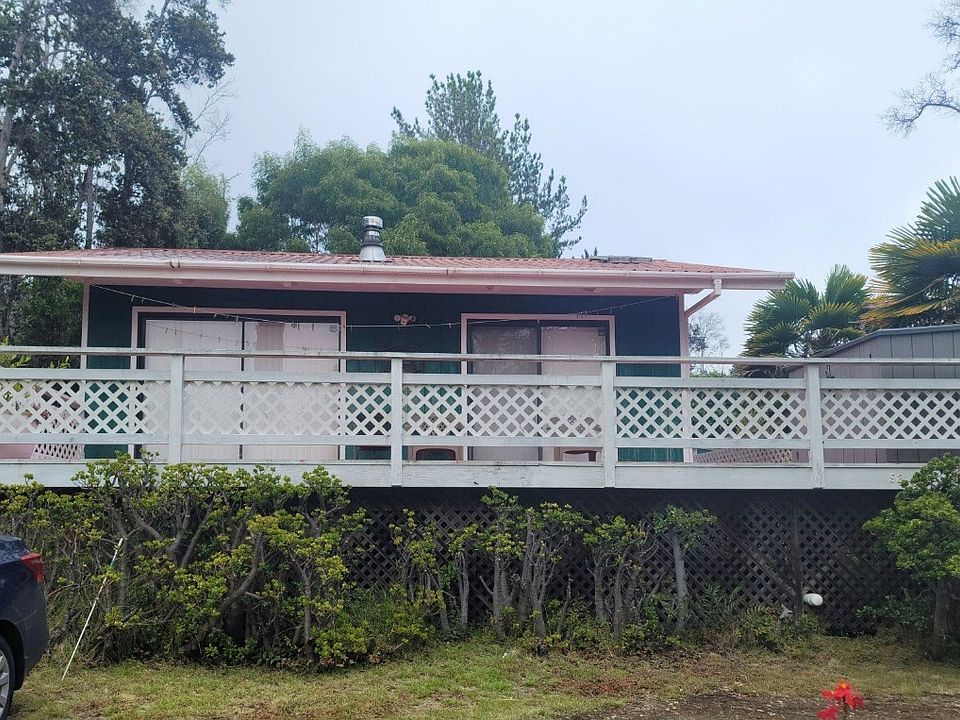 Fully permitted 1 bed/1 bathroom, partially furnished cabin in HOVE on Septic. Enjoy the cooler weather located at approximately 4,200 ft surrounded by a beautiful Hawaiian forest and landscaped grounds. One of the most vegetated properties in HOVE. Comfortable home is approximately 576 sq ft with large lanai off Livingroom and bedroom. Cabin has an open floor design with vaulted ceilings Livingroom, dining area and kitchen. Stove is propane and in like new condition. Kitchen drawers are cedar lined and there is an island for added counterspace and storage. The corner cabinet has a lazy susan for easy access. Keep warm with the wood burning fireplace. The fireplace flue was recently cleaned and hasn't been used since cleaning. Electricity bills are low due to propane on-demand hot water heater and stove. The water pump, pressure tank and filters on the water system are new. Lots of storage! Outside has multiple storage shed. One small plastic storage shed houses the garbage cans etc. There is a second large, long plastic storage shed for tools and large items. A third storage shed is an 8x8 wood shed with a brand new roof. This could also be an office, yoga room etc. A fourth small plastic storage shed is on the lanai and houses the washer and dryer. The best part of this property is the land itself. Drive down the long landscaped circular driveway lined with exotic plants . Harvest fruit off your fruit trees including, but not limited to, grapes, peaches, figs, dragon fruit, macadamia nut, variegated oranges, and more! Lots of Ohia, huge koa trees, exotic palms, orchids, agave and other plants. Some items included in sale are dining room table and 4 chairs, end tables and lamps, couch, desk, fire place tools, 4 glass, tea kettle, original painting from Gary Burghoff (Radar from Mash) and more.