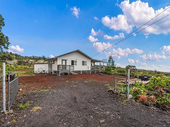 Lovely (Permitted) 2/1 with sweeping coastline and south point ocean views. Located in lower HOVE this spacious home has an open floor plan with vaulted ceilings making it feel even larger and part of the lanai was enclosed for more living space. There is also a laundry room with storage built on to the outside of house. This home sits on a wide corner lot that is gated and almost fully fenced. The whole acre is usable and is landscaped with various plantings including Mango, Koa, Peach, Loquat, protea, guava, Ulu (breadfruit), Olive, lime, tangerine, cara cara orange, Ohia and so much more. Also included is a pigeon coupe, a chicken coupe and a sweet space with a green house and BBQ area. You dont want to miss this home! Plenty of potential for expansion or perfect for a first time home buyer or a retiree. Home has been newly painted on the outside