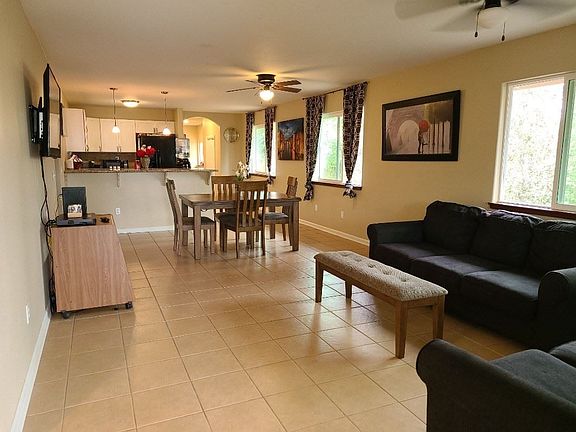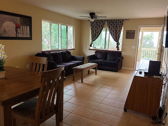 LIKE NEW, SINGLE-LEVEL HOME WITH SOME COASTLINE OCEAN VIEWS! Gated with a private concrete driveway. Move in ready single Level 3 bedroom, 2 bath, with attached carport enclosed for additional living area. Built-in 2007 is permitted, fully insulated & in very good condition. Lots of windows to enjoy cool breezes & ocean views. Quality finishes include tile floors, new sandalwood luxury vinyl plank flooring, natural finished wooden windowsills, arched doorways with rounded corners. Open & airy living area opens onto 154 sf tiled lanai for your outdoor dining & relaxation to enjoy ocean & sunset views. The kitchen includes granite counters & a large breakfast bar with nice pendant lighting, pull-out drawers & lazy Susans. The en-suite master bedroom has sandalwood vinyl flooring, wood windowsills, and large closet. The bathroom features granite counters, tile floors & full tub/shower. 2 guest rooms with sandalwood vinyl flooring share a full bath. The spacious utility area off the kitchen includes a storage closet, a new washer/dryer, and a utility sink. The bonus room has an additional 440 sf with a storage closet housing the electric water heater and water pump system. Includes all new appliances, washer, dryer, refrigerator, and stove. Plenty of storage under the house as well. Cool elevation at 2,900' elevation just 3 blocks from Aloha Blvd in the greenbelt area near Tai Farm. HOVE is 45 minutes to Kona and a short distance to popular destinations like Pebble Beach, South Point, Green Sand & Punalu'u Black Sand Beaches, and Punalu'u Bakery. The community is self-sufficient with grocery stores, restaurants, gas stations, post office, hardware store & Sat farmer's markets. There is a neighborhood watch, police substation, and volunteer fire dept for your safety. The Ka'u Bay health clinic is 20 minutes away in downtown Naalehu and HOVE has a new transfer refuse station off Hwy 11. SELLER MOTIVATED!