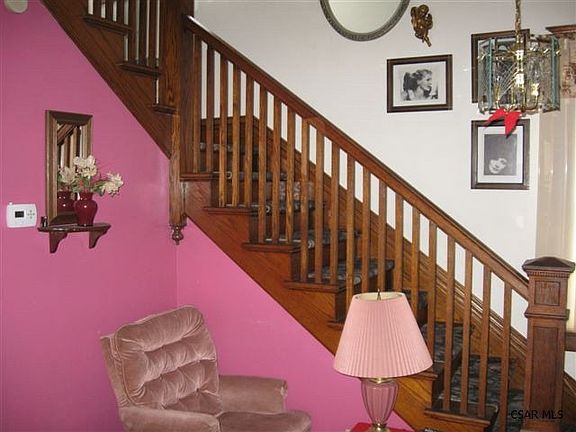 5137...Move in Condition 2.5 Story vinyl-sided home with hardwood floors throughout, large eat-in kitchen with oak cabinets,great living room with gas fireplace. This Victorian-styled home boasts beautiful oak trim with a formal dining room. Includes 4 bedrooms and full bath on second floor. Great attic space for storage or remodel. Bar in basement. Level & fenced yard for privacy. Off street parking.
