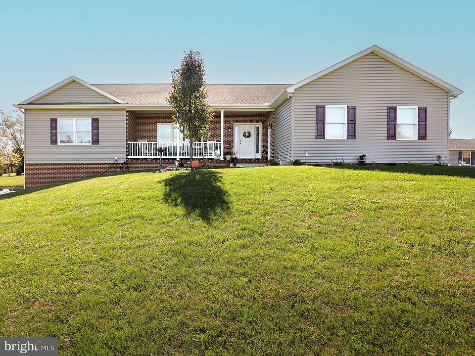 Majestically perched on a hill, your dream home awaits! Convenient to Martinsburg and I81 this lovingly maintained ranch home sits on two beautiful acres. Offering three bedrooms and three full baths and Hardwood floors throughout most of the main level. The sunny kitchen boasts ample cabinet storage, Island bar, stainless steel appliances and solid surface counter tops. Large family room off the kitchen with built in cabinetry. Formal dining room with plenty of space for additional cabinetry. Spacious primary bedroom with, owners bath, walk in closet and two auxiliary closets. Full unfinished basement with full bath just waiting for future expansion. Extended Patio with privacy fencing and SunSetter Awning. 2 car attached garage and a 1 car detached garage. Notable details: 2x6 framing, 400 AMP Electrical Service, 9 Ceilings, partial Heat Pump replacement 2022, Maytag Kitchen Appliances 2022, Maytag Washer and Dryer 2022. This is a truly wonderful property! Dont Wait!