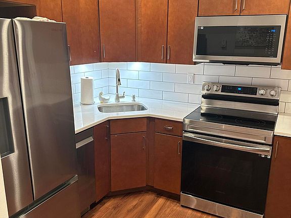 Beautifully renovated lower-level condoSamsung stainless steel appliancesModern finishes throughoutConvenient storage areaQuartz countertopsWaterproof luxury vinyl flooringImmaculate sun-bright kitchen