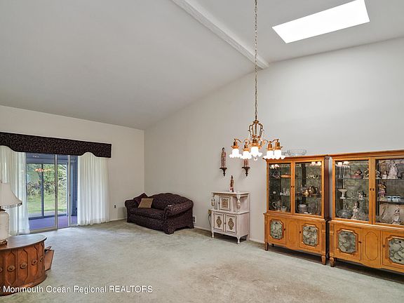 Welcome to Shady Oaks, a private, tranquil 55+Adult Community. This open concept single floor home has a newer kitchen with quartz counter tops, Stainless Steel appliances and a pass-through to the Dining Room. The expansive Living/Dining room has vaulted ceilings and skylights with a Slider leading out to the spacious Sunroom.Enjoy a cup of tea while looking at the birds and nature!The Master bedroom with bath, has a huge walk-in closet and a Slider to the Sunroom. There is a second Bedroom and another full bath as well as a patio with views of lush greenery. Conveniently located near downtown Red Bank, shopping and eateries. Club House, pool, shuffleboard and tennis on premises. Welcome Home!