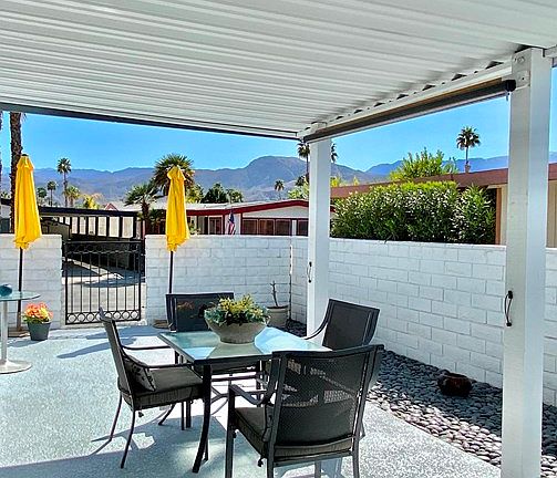 Outstanding property at The Colony. Extremely updated inside & out. Enjoy the fact that you are on a corner lot, interior location, backs to greenbelt that leads to clubhouse & pool (6 homes away with your own private gate. The mountain views are amazing. Recently 3-2021, the patio, walkways & driveway has Marbelite Texture Deck Surface. The custom front door leads into a completely open great room floorplan. Kitchen is outstanding with spacious counters, wonderful cabinets, newer appliances laminated flooring, small closet that could be pantry or coat closet. Living Area & Kitchen has windows that allow beautiful mountain views. 2 bedrooms, 2 baths and a wonderful area now used as office that could be made into bedroom, craft room, etc. This room also has French doors leading to covered patio. Master Bedroom has spacious walk in closet & also a walk in laundry room. Master bath has large, floor to ceiling tiled walk in shower. Dual pane windows throughout.Guest bedroom has door to guest bath that includes a tiled walk in shower. Long Covered patio to accommodate a nice walk in shed to store all of your extras. Laminate flooring in all rooms except the two baths, which are tiled. Being Sold Unfurnished. Space Rent $732.22 for Full Time/Permanent Resident+ utilities Part Time Space Rent a Higher amount. No HOA